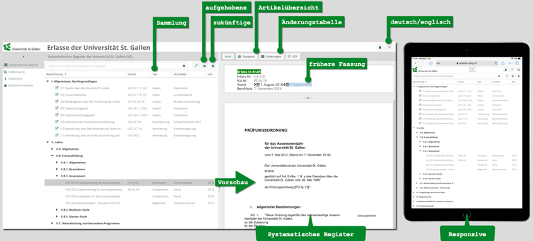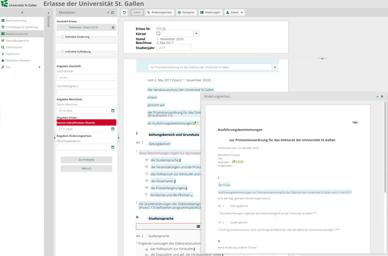 Die mit DocGenie 5 verwaltete Erlasssammlung der Universität St.Gallen ist online. Schauen Sie sich das Publikationssystem live an!