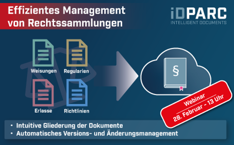 In diesem Webinar stellt iDPARC Ihnen das Erlassmanagement System vor, mit dem die Erstellung und das Management von Rechtssammlungen für Sie ein Kinderspiel wird.