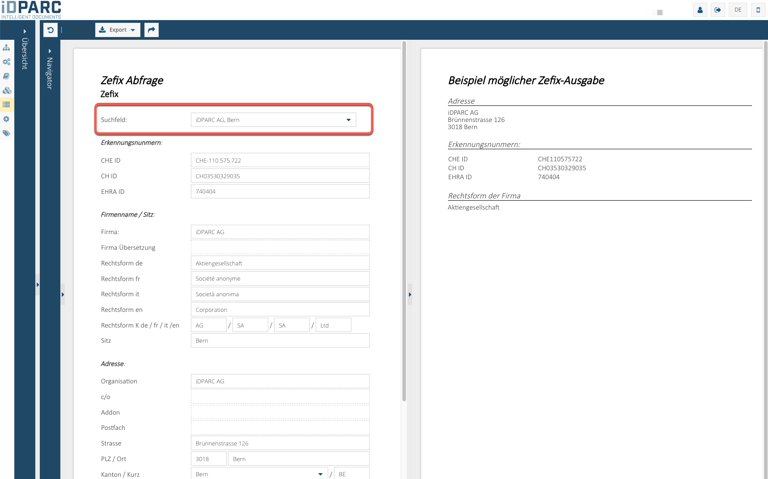 Zefix Schnittstelle in DocGenie implementiert