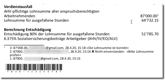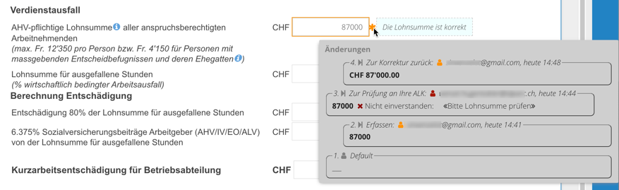 Der automatisch zugeteilte Sachbearbeiter einer Arbeitslosenkasse kann direkt über das Formular mit dem Antragsteller kommunizieren und so effizient mitteilen, dass z.B. eine Beilage fehlt oder ein bestimmter Wert in Frage gestellt wird.